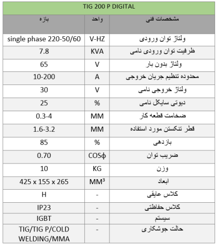- مناسب برای جوشکاری تیگ ، تیگ پالسی ، cold tig و الکترود