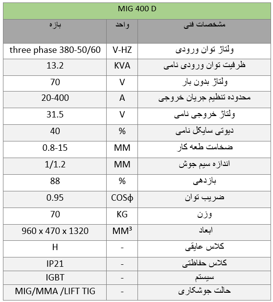 دستگاه جوش CO2(میگ ) سه فاز ایران ترانس MIG 400D