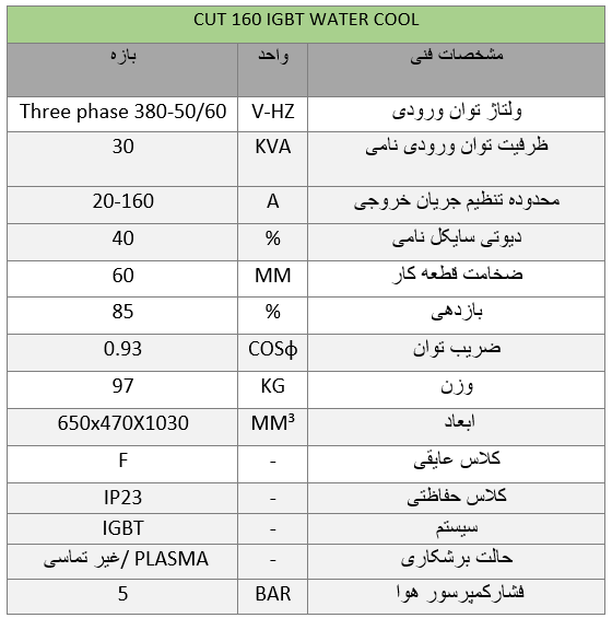 دستگاه برش پلاسما ایران ترانس CUT 160 (آب خنک)