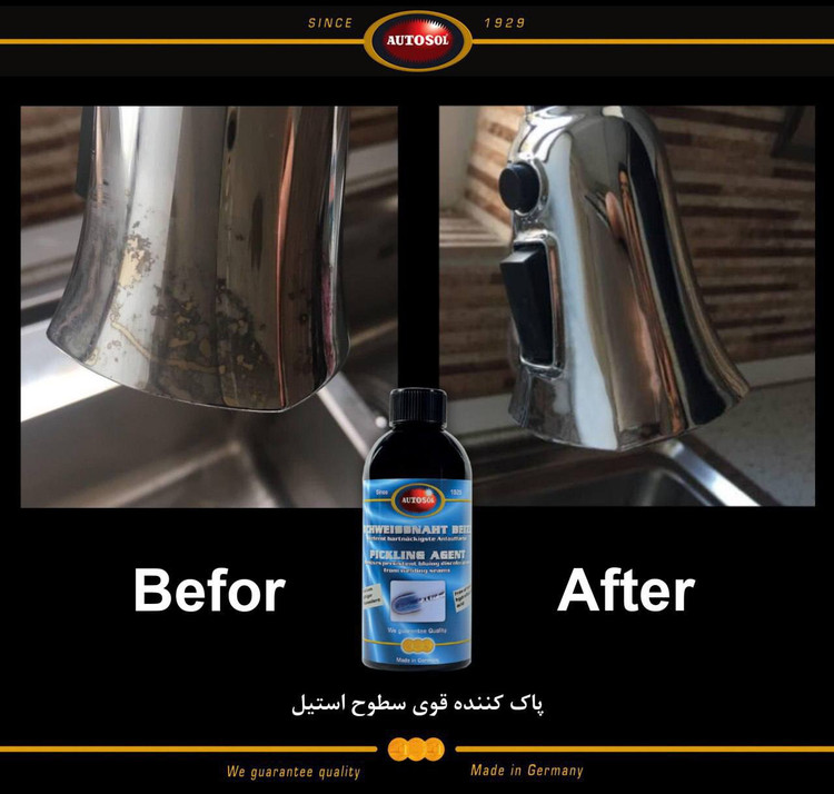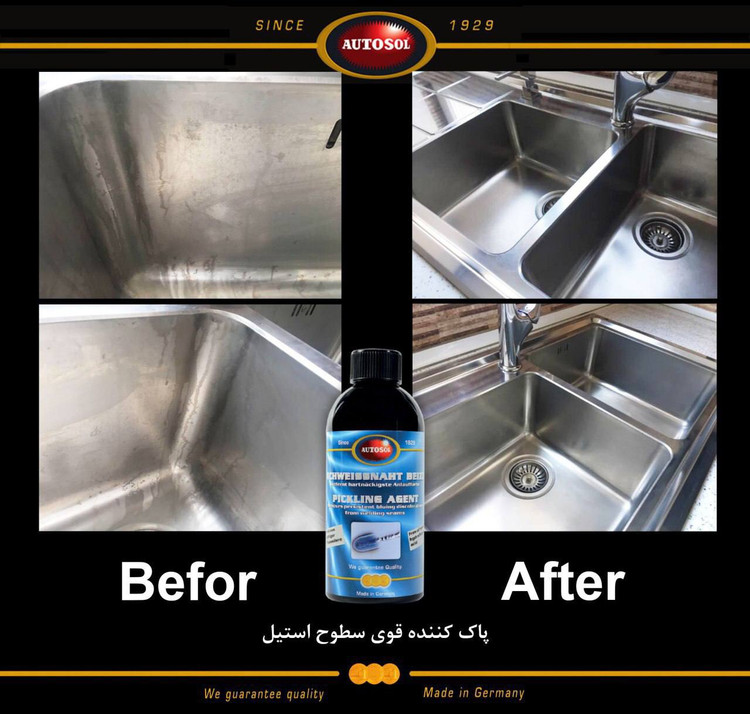 این محصول همچنین برای برطرف کردن و زدودن رسوبات آهکی و سفیدک از سطح استیل و سطوح سرامیکی ، فوق العاده می باشد و فاقد هرگونه مواد ، گاز یا بخارات سمی است و دارای کاربردهای صنعتی ، خدماتی و خانگی می باشد. این محصول در زمینه پولیش و تمیز کردن فلزات بوده که در آلمان تولید می گردد . قابل مصرف بر روی کلیه سطوح فلزات مانند (مس ، برنز ، آلومینیوم ، استنلس استیل ) و خصوصا استیل می باشد که در مدت زمان اندک ( بسته به میزان آلودگی ) پاک و بطور چشمگیری به حالت براق و یکنواخت در می آورد . این محصول را میتوان به عنوان پاک کننده تمیز کننده و جرمگیر اجاق گاز ، سینک ظرفشویی ، هود ، اگزوز ماشین ، آسانسور وتمام تجهیزات استیل استفاده کرد .پیکلینگ ایجنت محصولی بسیار قدرتمند در زمینه جرم برداری ، تمیزکاری و پولیش فلزات است. این محصول با فرمولی پیشرفته ،ترکیبی از مواد شیمیایی فعال است که با خاصیت پاک کنندگی فوق العاده ، کلیه سطوح فلزات و خصوصاً استنلس استیل و کلیه گروهها و آلیاژ های استیل را که به مرور زمان جرم گرفته اند و یا بر اثر جوشکاری (tig/mig/mag ) و یا دیگر فرآیند های شیمیایی یا حرارتی صنعتی دچار تغییر رنگ ، یا آلودگی اکسید و زنگ زدگی در سطح خود شده اند را در مدت زمان بسیار اندک پاک می کند و بطور چشمگیری به حالت براق و اولیه در آورد. پولیش و تمیزکننده بسیار قوی فلزات اتوسل سبب مقاومت و جلوگیری از خوردگی در برابر عوامل محیطی شده و عمر استیل را در نهایت درخشندگی افزایش میدهد.